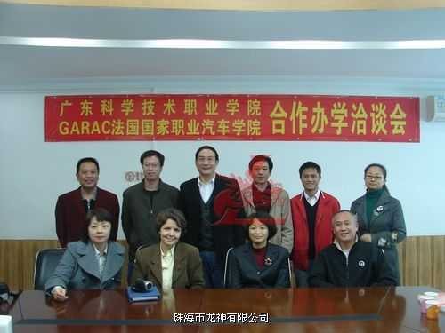 2010年1月法國國家職業(yè)汽車學(xué)院國際項目合作負(fù)責(zé)人張丹宇老師與外交部阿若略女士在我司領(lǐng)導(dǎo)的陪同下到廣東科學(xué)技術(shù)職業(yè)學(xué)院洽談合作辦學(xué),受到學(xué)院領(lǐng)導(dǎo)及老師的熱情接待和歡迎。會上廣科院周院長介紹了與龍神公司已愉快地合作三年,培養(yǎng)出的學(xué)生得到社會用人單位的認(rèn)可,充分肯定了與龍神合作辦學(xué)模式,并感謝龍神在汽車鈑噴技術(shù)及設(shè)備上給予的幫助和支持。我司彭總曾經(jīng)在法國留學(xué),對法國教學(xué)體質(zhì)有一定的了解,也希望為法國汽車學(xué)院與中國搭建長期合作的平臺,從而推動汽車后市場的發(fā)展;促進(jìn)鈑噴技術(shù)的國際交流,使鈑噴行業(yè)國際化。通過此次友好洽談參觀考察,法國國家職業(yè)汽車學(xué)院國際項目合作負(fù)責(zé)人表示將會進(jìn)一步了解中國汽車鈑噴技術(shù),加強(qiáng)國際交流。